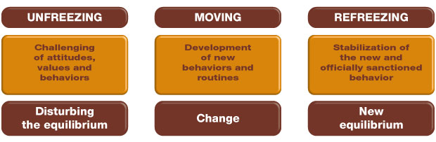 Management has three basic challenges: to manage continuity, to ensure core competences and to lead change. Change has a lot to do with behavior. More than 50 years ago Kurt Lewin defied the three-phase model of change: